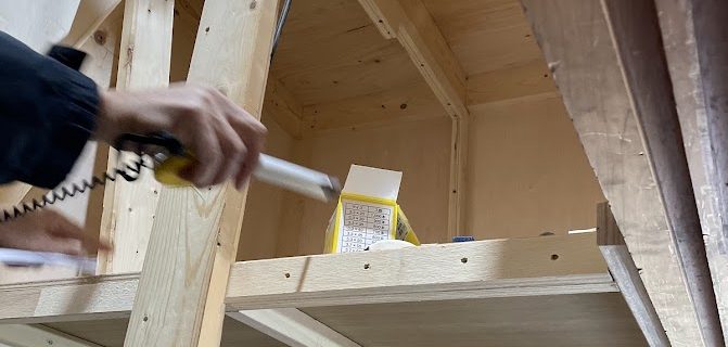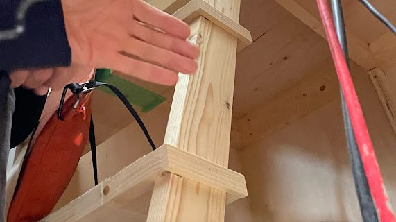 淡輪山荘の屋根裏階段、完成。手すりも検討 2025年12月19日、淡輪山荘の屋根裏階段が完成。手すりの取付け位置を検討。急角度の階段のため、安心して登れるように手すりは必須のものです。 Attic Staircase a …