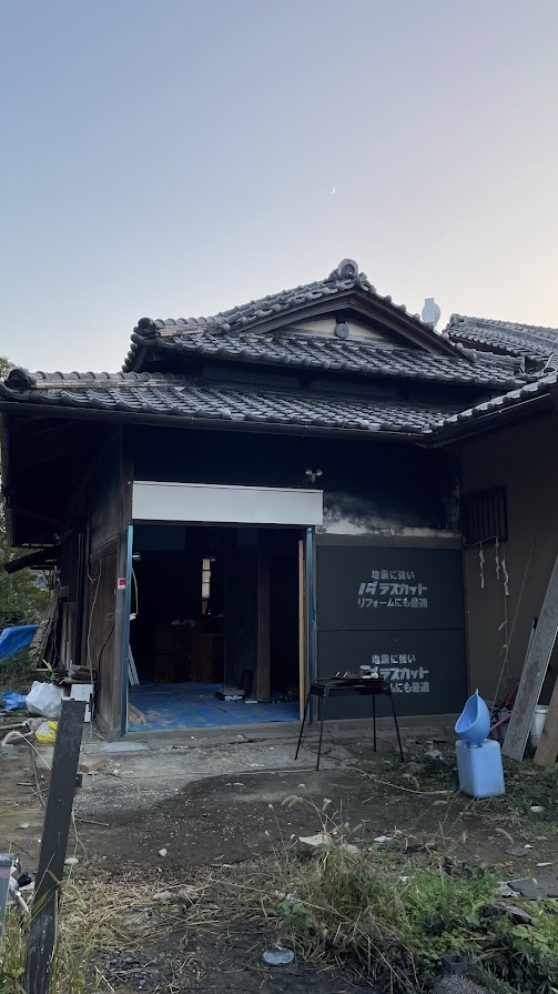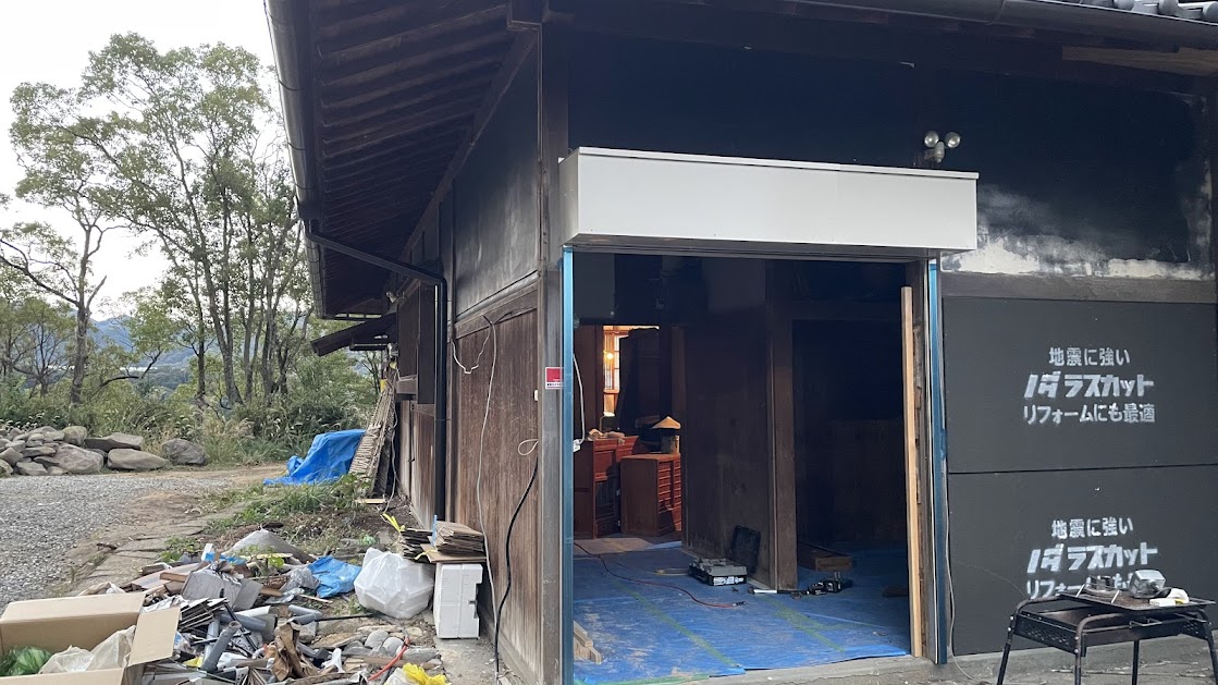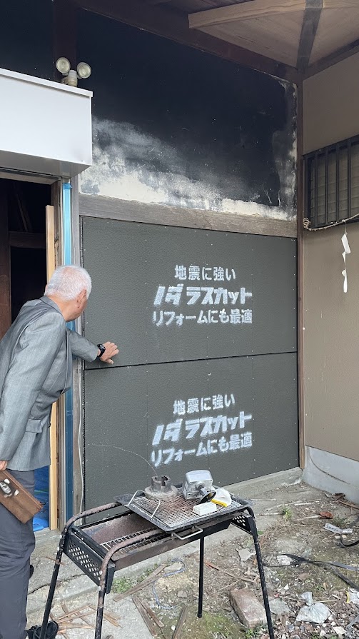2025年11月25日、100年古民家 淡輪山荘の勝手口の壁にラスカットの耐震壁が仕上がりました。