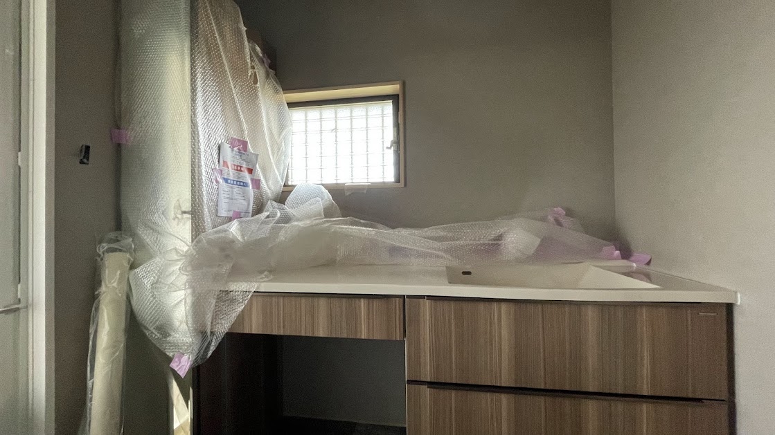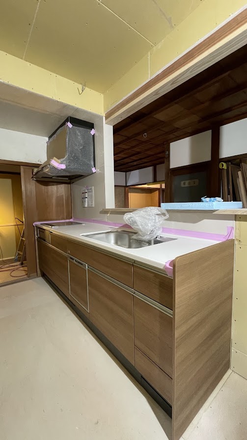 2025年11月26日、淡輪山荘の水回りに現代風最新設備が搬入されました。100年古民家とはいえ、キッチンも洗面も「大正迎賓館」にふさわしい機能を装備しています。