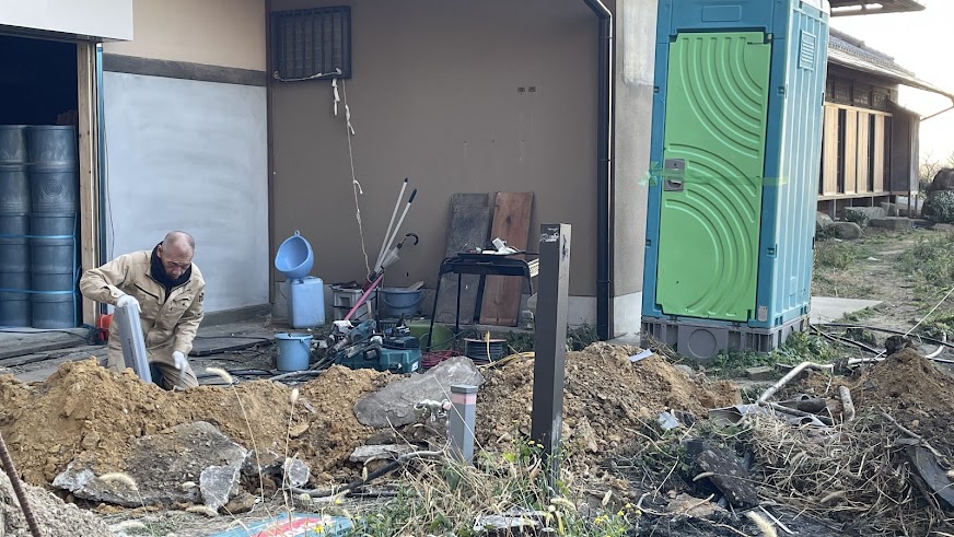 2026年1月5日、100年古民家 淡輪山荘の給排水管工事が始まりました。着々と淡輪山荘のライフラインが整っていきます。