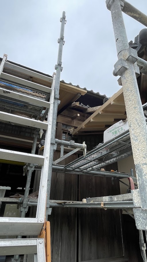 淡輪山荘の正面玄関は「大正迎賓館」の顔、その屋根の修復にも細心の注意が払われるby kozuに 100年古民家、リノベーション、大正迎賓館、淡輪山荘on 投稿日: 2025年10月27日2025年10月27日 淡輪山荘の正面玄関の屋根の修復にも細心の注意が 100年古民家 淡輪山荘の正面玄関は「大正迎賓館」の顔、その屋根の修復にも細心の注意が払われます。屋根下の野地板や垂木も生かせる部分は活かしつつ、朽ちた個所を修復していきます。