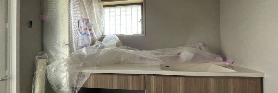 淡輪山荘の水回りは現代風最新設備で! 2025年11月26日、淡輪山荘の水回りに現代風最新設備が搬入されました。100年古民家とはいえ、キッチンも洗面も「大正迎賓館」にふさわしい機能を装備しています。