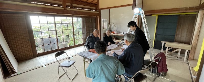 改修プロジェクトも後半、定例打合せにも熱が入る 2025年11月13日、淡輪山荘改修プロジェクトも後半、定例打合せにも熱が入ります。建築士や工事責任者と、問題点の協議、施工の仕様決め、など週一回の大切な時間です。