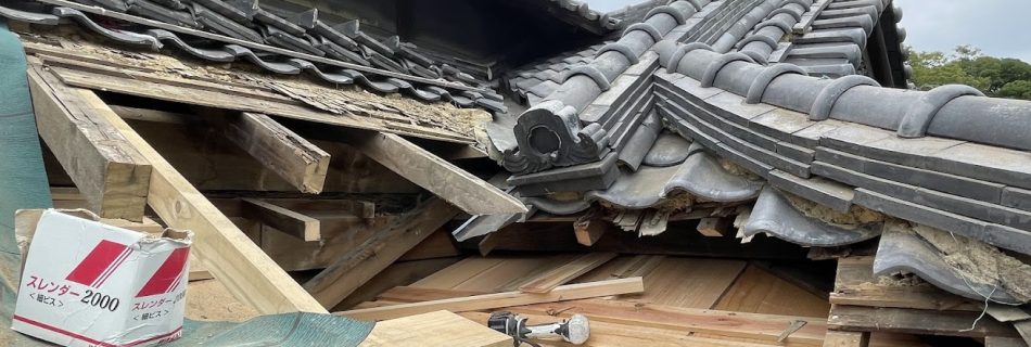 淡輪山荘の正面玄関の屋根の修復にも細心の注意が 100年古民家 淡輪山荘の正面玄関は「大正迎賓館」の顔、その屋根の修復にも細心の注意が払われます。屋根下の野地板や垂木も生かせる部分は活かしつつ、朽ちた個所を修復していきま …